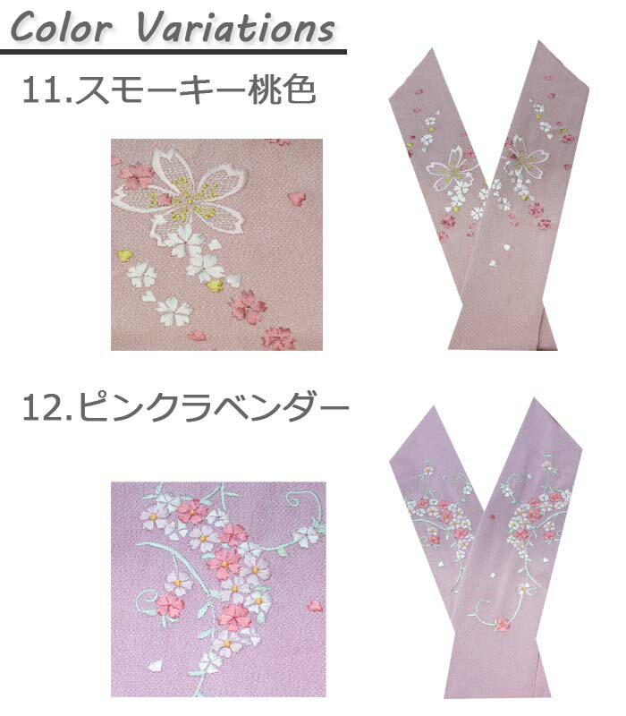 )商品名 刺繍入りカラー半襟(半衿) No.11〜No.20 ポイント 襟元をちらりと演出♪