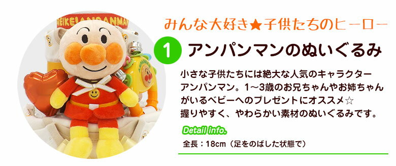 アンパンマンの新生児アイテム5点付き!3段おむつケーキコンビ肌着とベビー雑貨がついたアンパンマンの3段おむつケーキです。