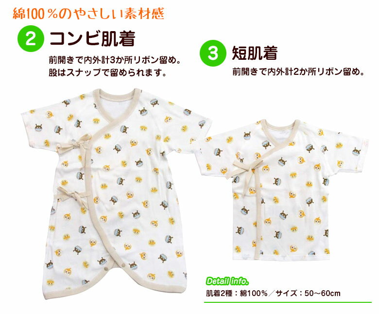 新生児コンビ肌着(サイズ:50〜60/綿100%) ☆